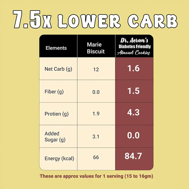 Dr. Aeran’s Almond Cookies are a wholesome choice for anyone seeking cookies that diabetics can eat without worrying about sugar spikes. Specially crafted with a low-carb formulation, these healthy almond cookies are enriched with ayurvedic ingredients like methi, karela, and jamun seeds, all known for supporting healthy blood sugar control. Free from maida and refined sugar, these sugar free cookies are thoughtfully designed to combine great taste with mindful nutrition, making them a guilt-free morning or evening snack.