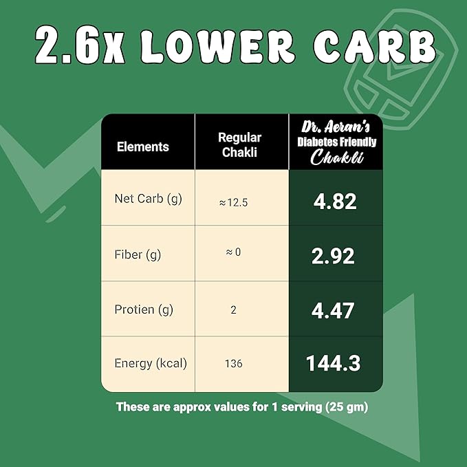 Made with ingredients that have a naturally low glycemic index, Dr. Aeran's Chakli supports balanced snacking without added sugar.